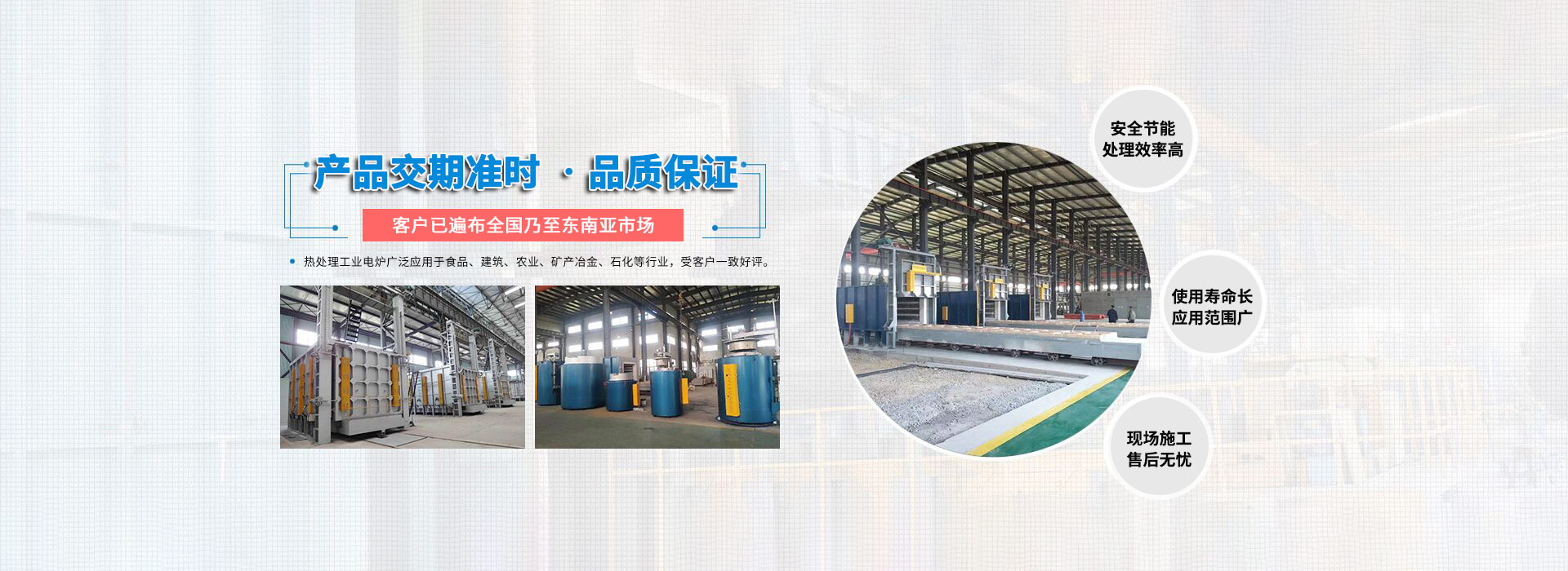 公司現(xiàn)有業(yè)務包括新能源電池燒結爐、連續(xù)式金剛石鋸片燒結爐、臺車爐、熱風循環(huán)爐、井式爐、罩式爐、管式爐、網(wǎng)帶爐、連續(xù)式滾筒爐、輥底爐、推桿爐、可傾式滾筒爐、鋼帶爐、鋁合金淬火爐、時效爐、坩堝爐、熔鋁保溫爐等。可對工件進行以電、天然氣、煤氣、工業(yè)燃油等為介質(zhì)的真空、保護氣氛、控制氣氛等各種自控熱處理。